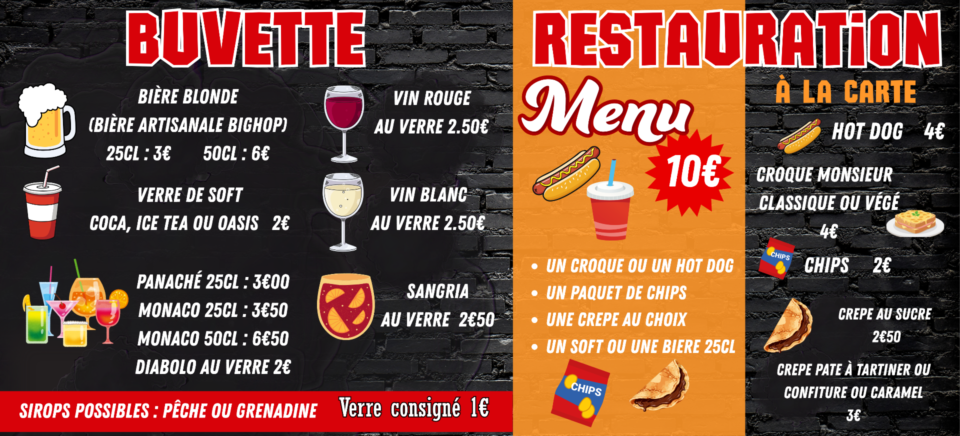 L'ardoise présentée est valable pour le prochain événement à venir, à titre indicatif, mais peut varier sur la date d'après.