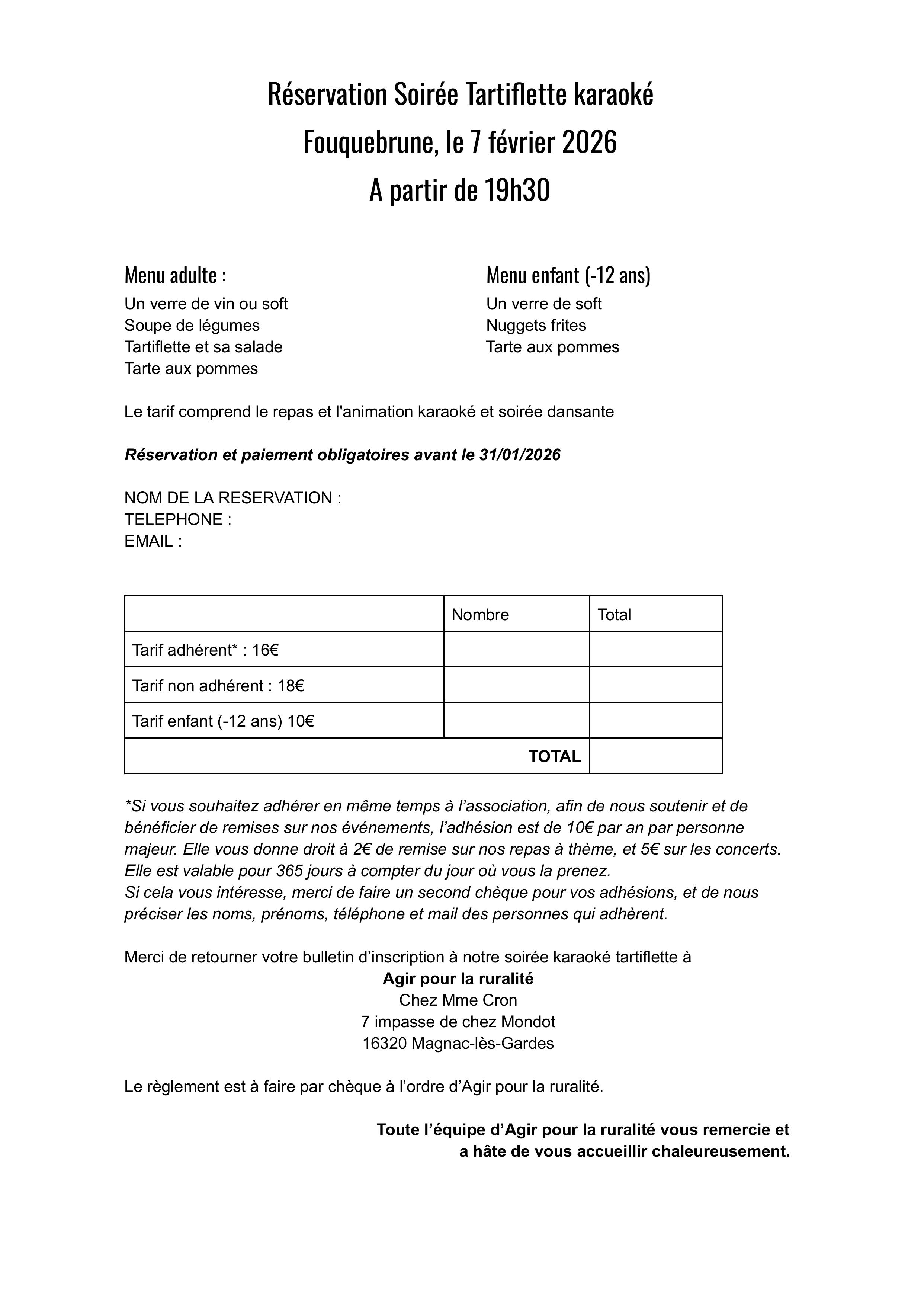 Alors pour ne pas louper l'événement, il faut impérativement réserver sur HelloAsso ou par courrier via le bulletin ci-dessous.